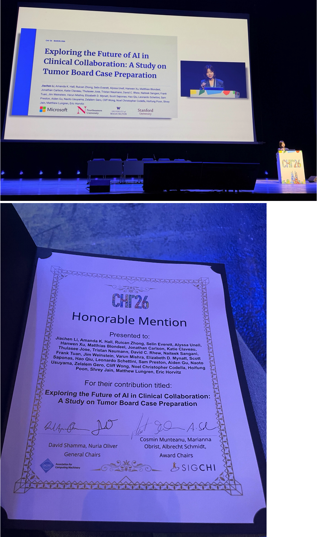 We are excited to announce that Jiachen received the Best Paper Honorable Mention for her 2026 CHI Paper that she presented in Barcelona!
